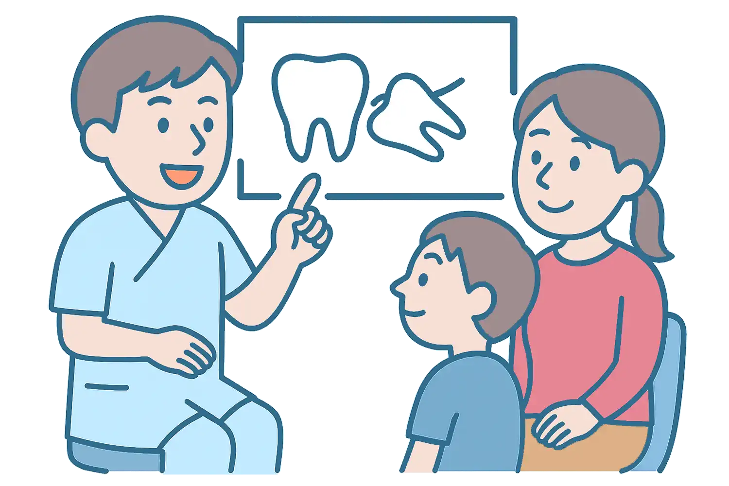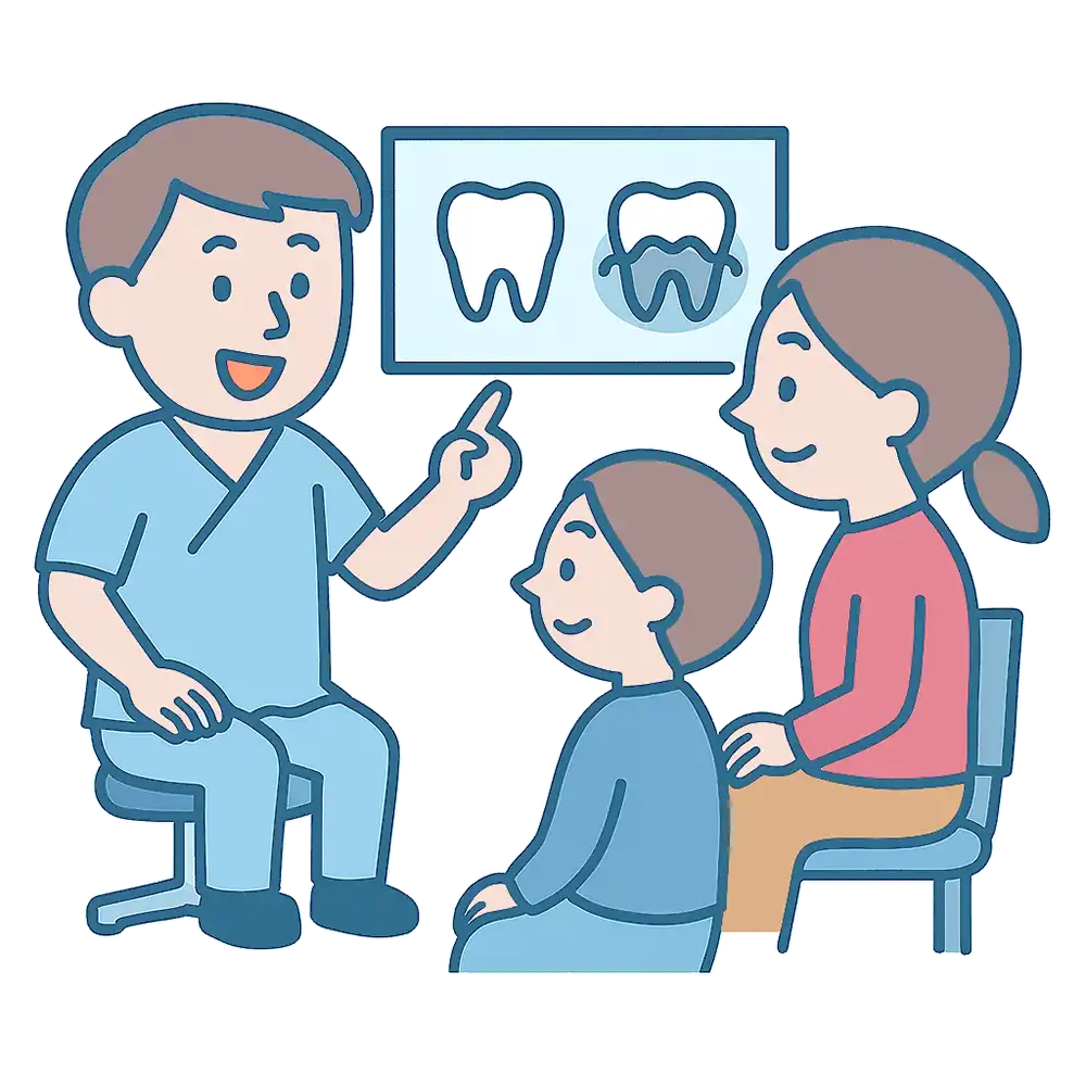 特に乳歯は永久歯に比べやわらかく虫歯になりやすい性質があるため、早期発見・正しい対応が重要となります。また、それ以外にも気になることがありましたらお気軽にご相談ください。